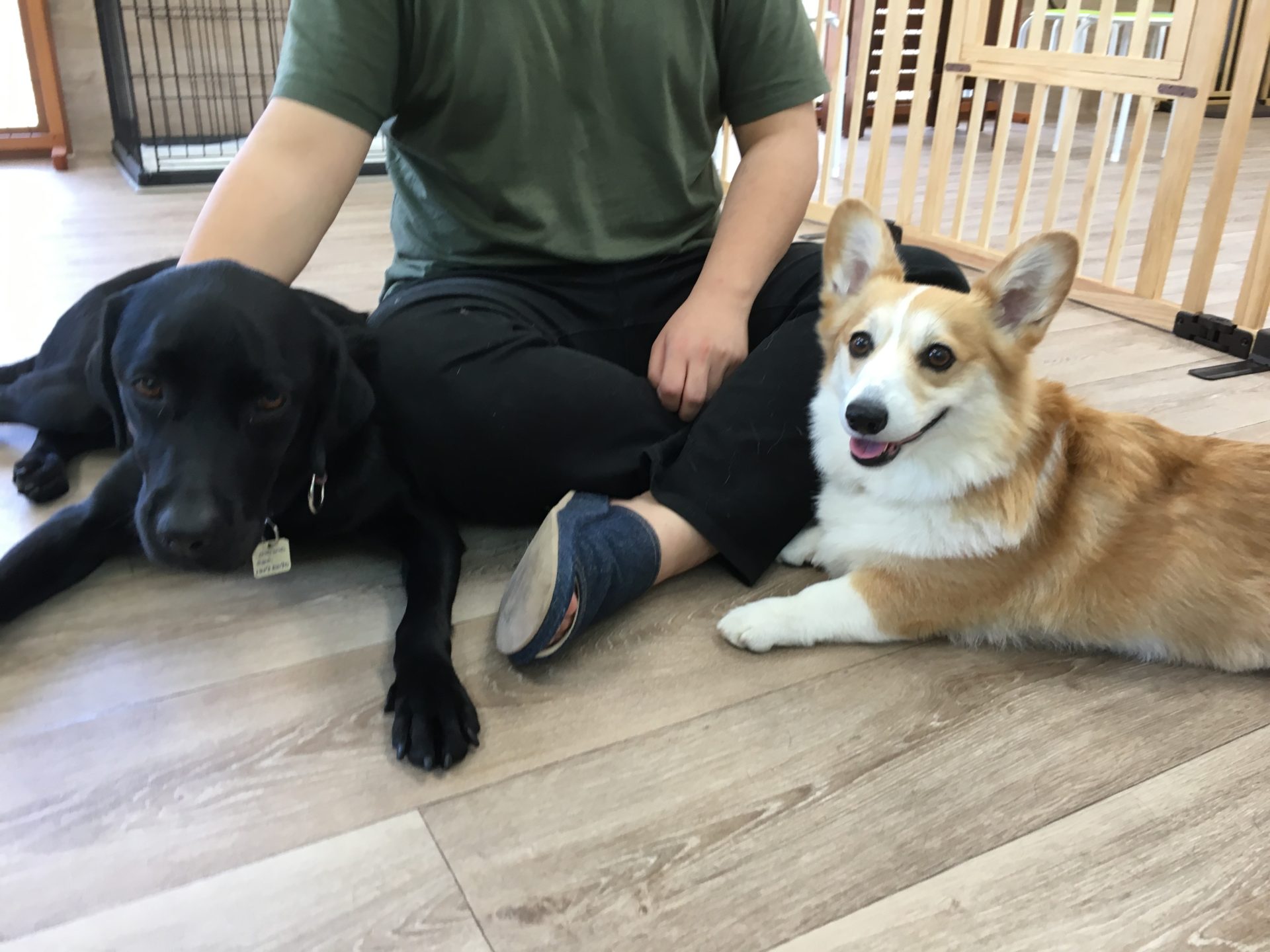 今日は『とのとの』ペットホテルのデイ預かりでラブラドールレトリバーの♥ももちゃん(藻々ちゃん)♥が、お泊まりの為の練習でコーギーの♥モコちゃん♥が来てくれました\(^o^)/