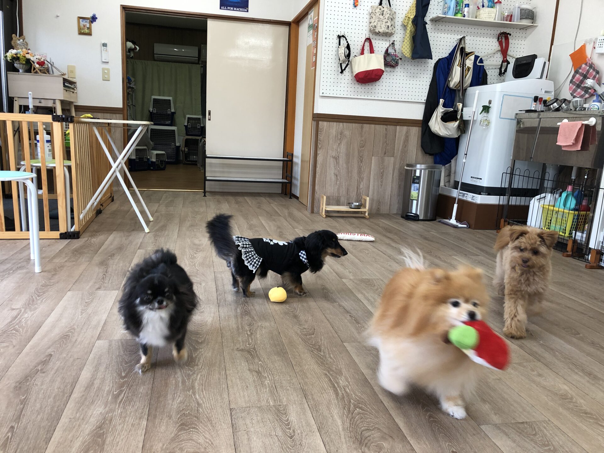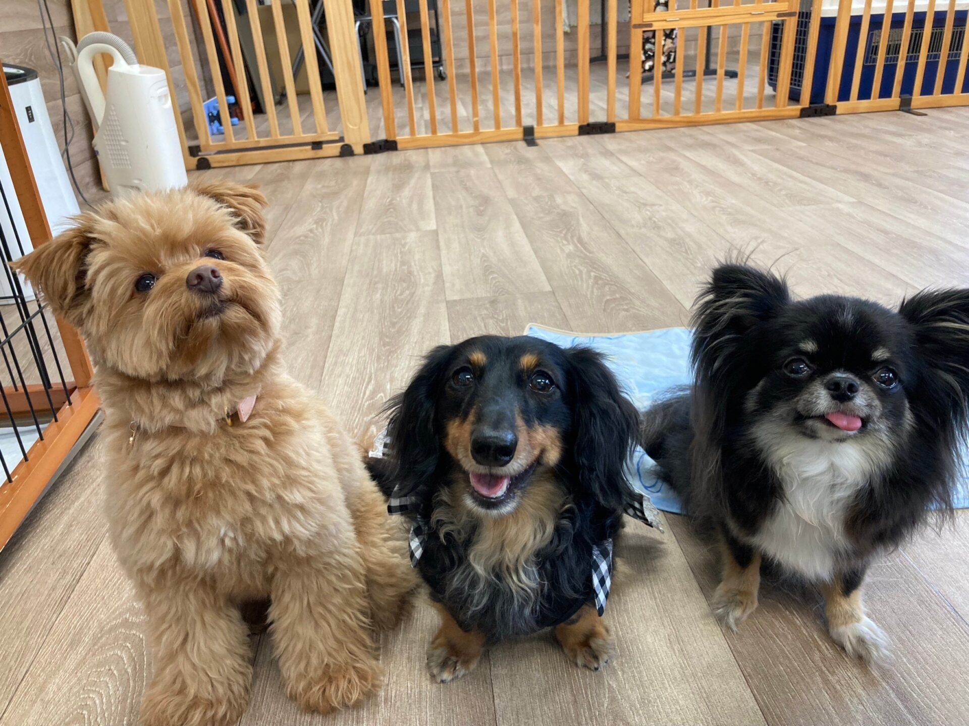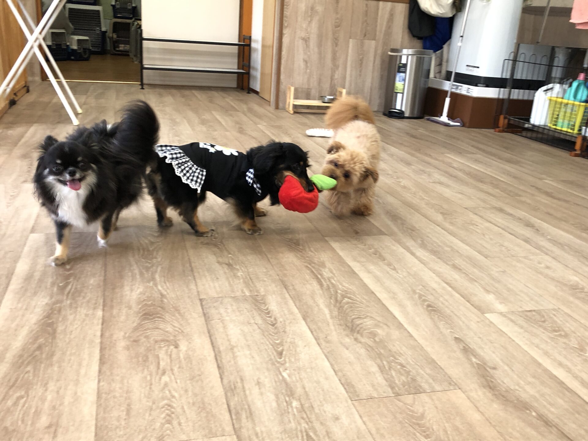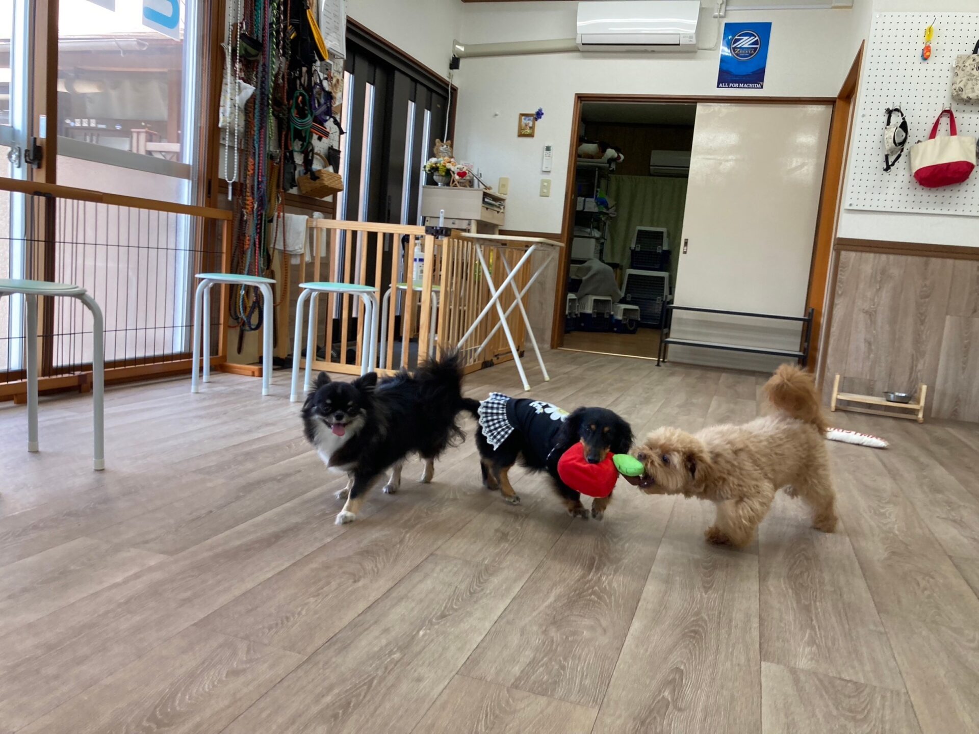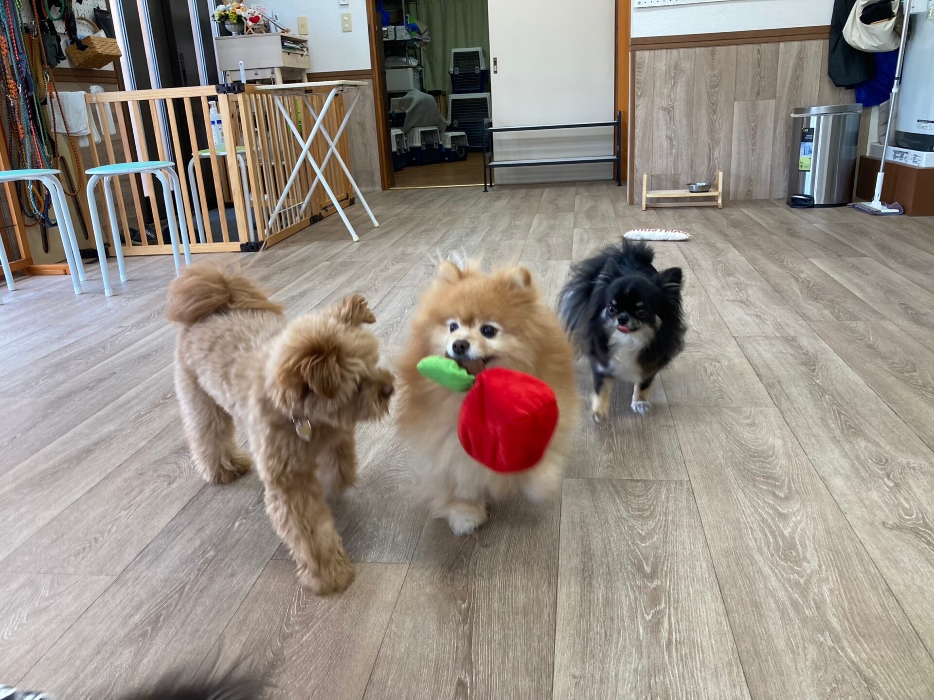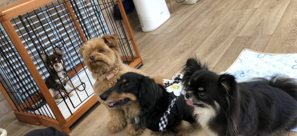 『とのとの』犬の保育園、ペットホテル ポメラニアン×トイプードルmixの♥紬ちゃん♥ ミニチュアダックスフンドの♥アリスちゃん♥(右側) お試しで、チワワの♥モカちゃん♥ お泊まりで、チワワの♥エレちゃん♥が来てくれました~(*^^*) この日の楽しいひとコマです(^^♪ Tweet