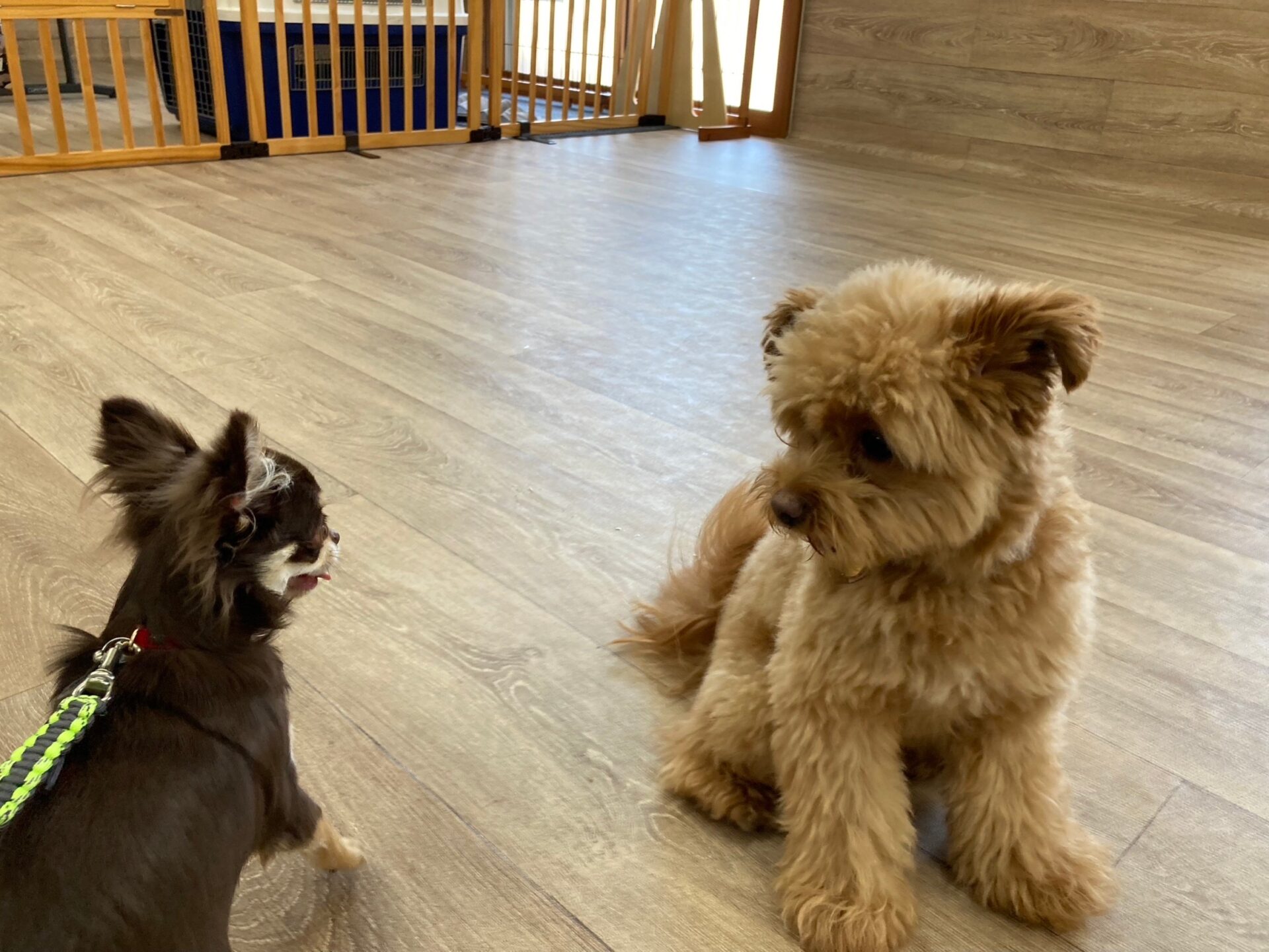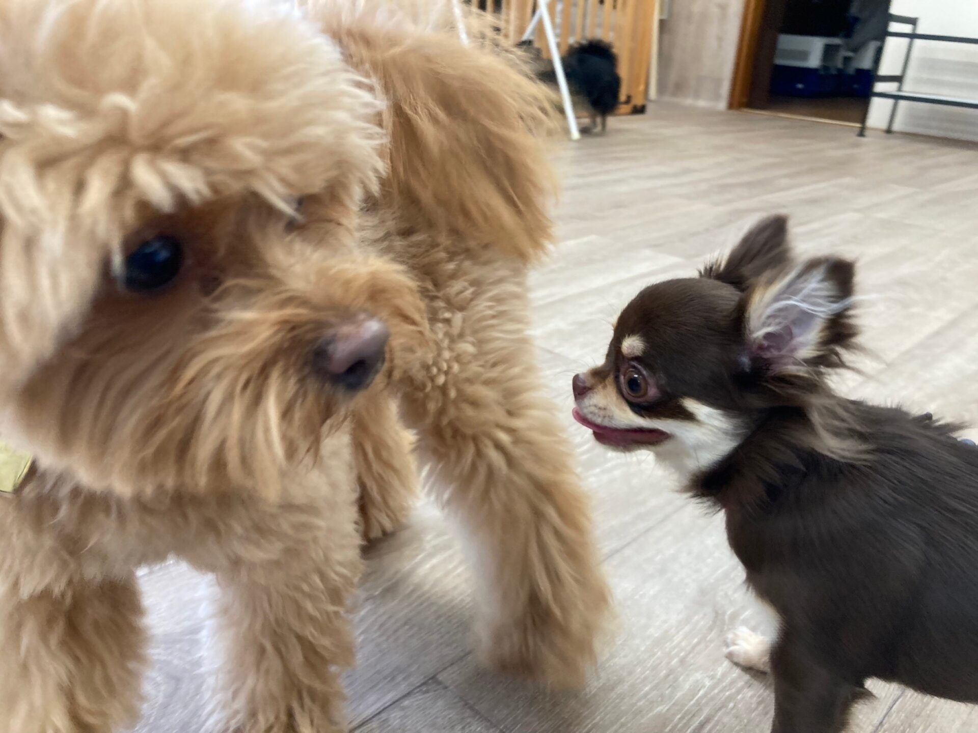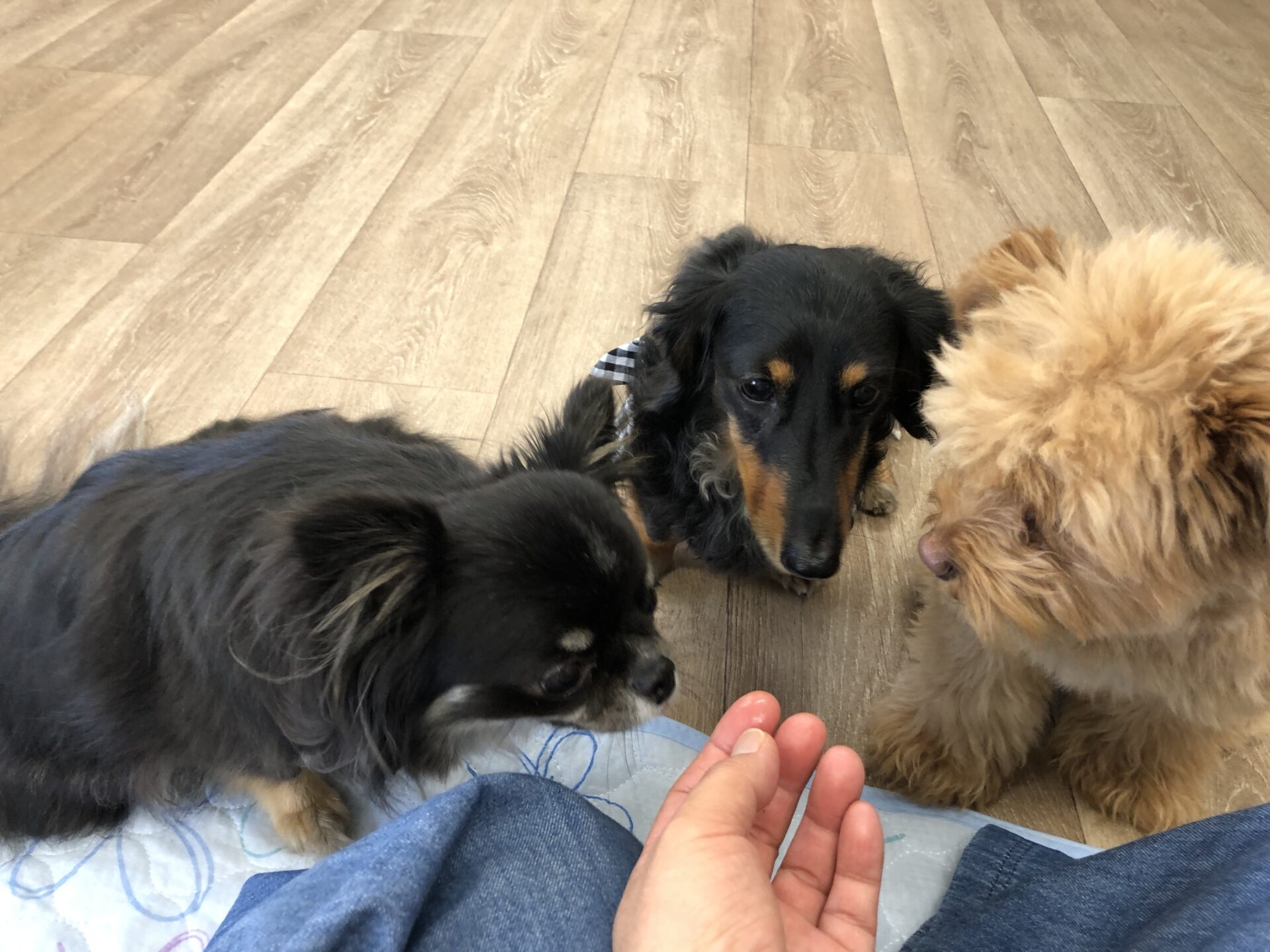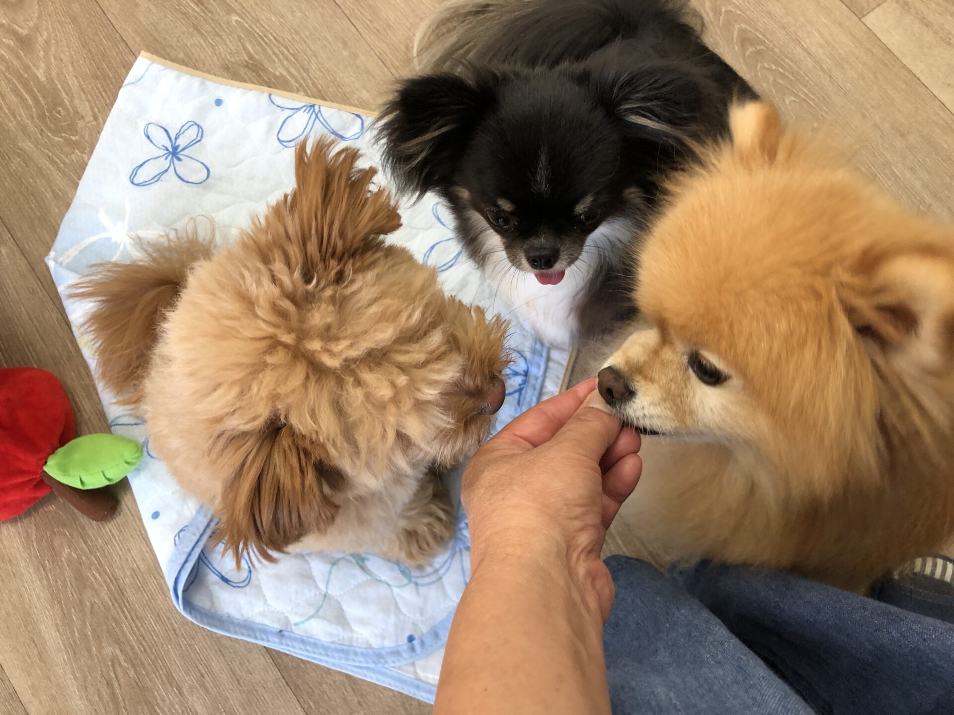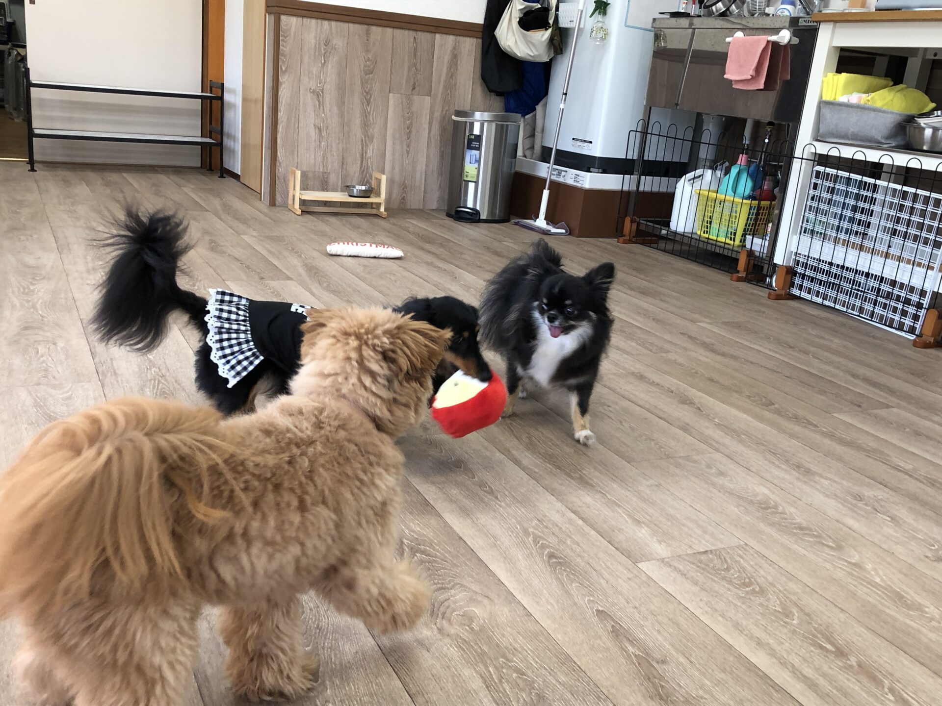 『とのとの』犬の保育園、ペットホテル ポメラニアン×トイプードルmixの♥紬ちゃん♥ ミニチュアダックスフンドの♥アリスちゃん♥(右側) お試しで、チワワの♥モカちゃん♥ お泊まりで、チワワの♥エレちゃん♥が来てくれました~(*^^*) この日の楽しいひとコマです(^^♪ Tweet